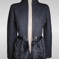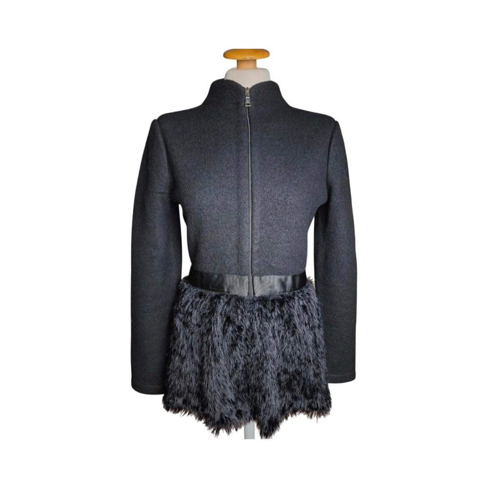 Emporio Armani Black Wool Jacket with Faux Fur Hem – Size M