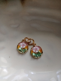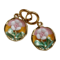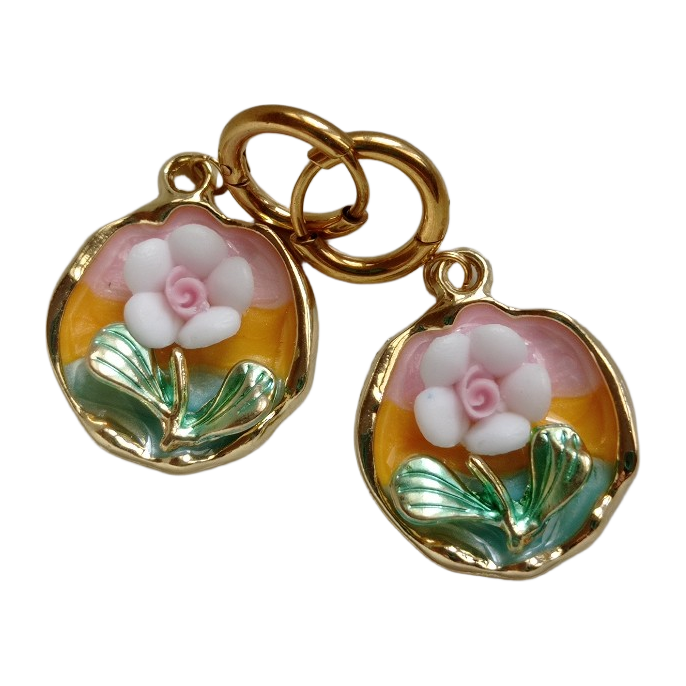 Suloiset kullänväriset korvakorut kukkakuviolla. Renkaat ruostumatonta terästä.