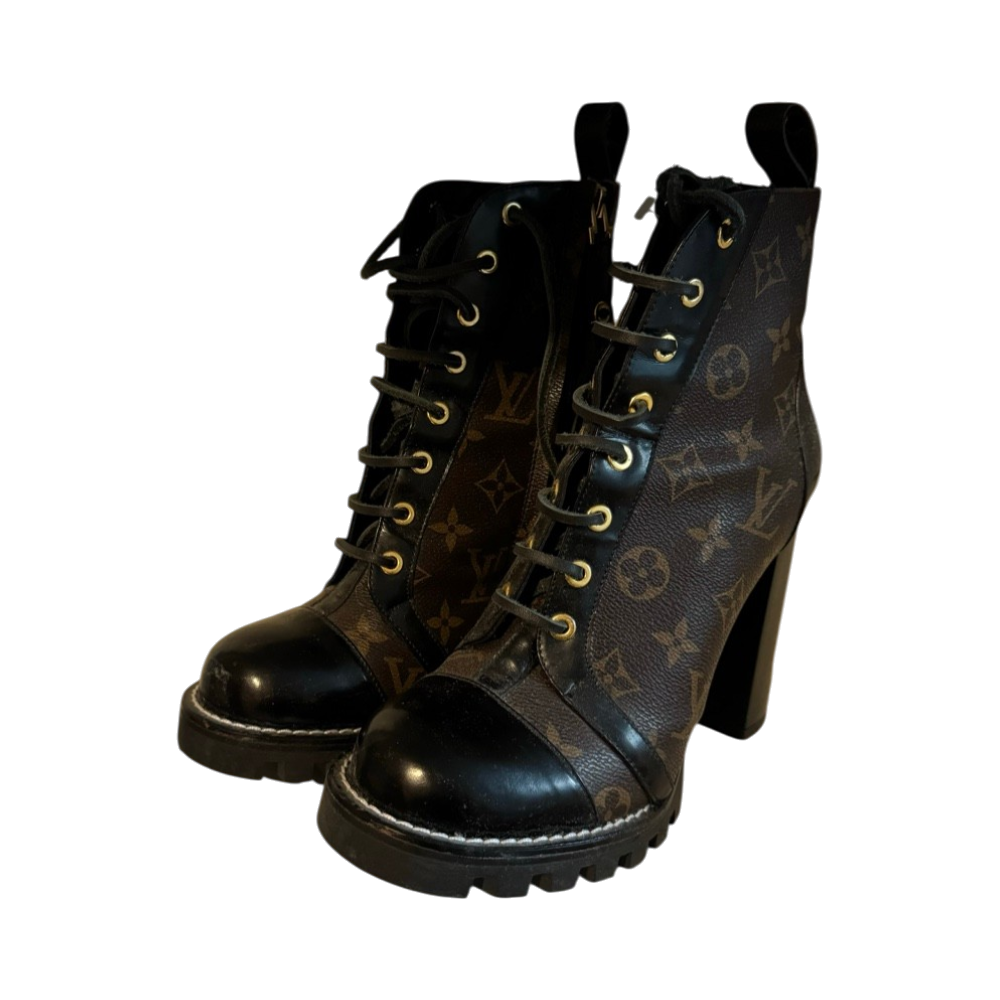 Monogram lace-up ankle boots