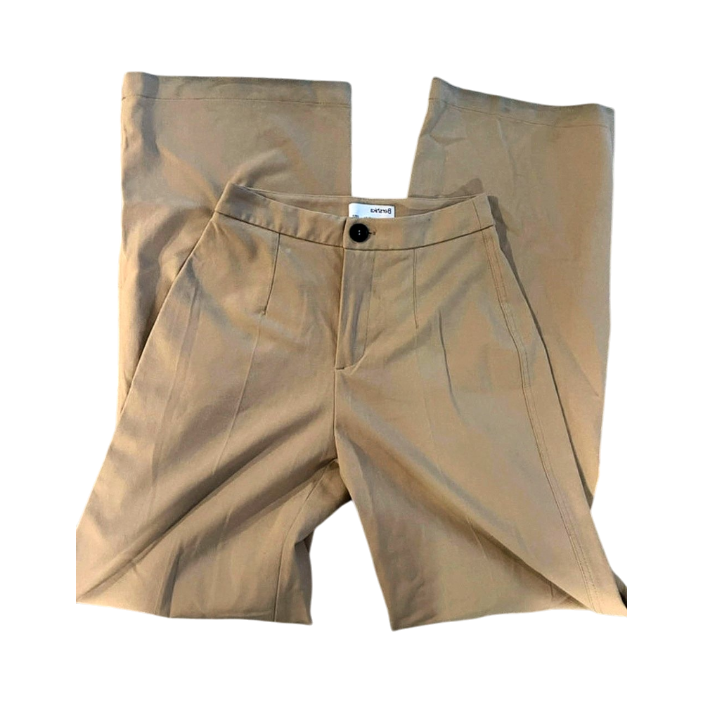 Beiget, suorat housut, napillinen vyötärö, edessä laskokset.