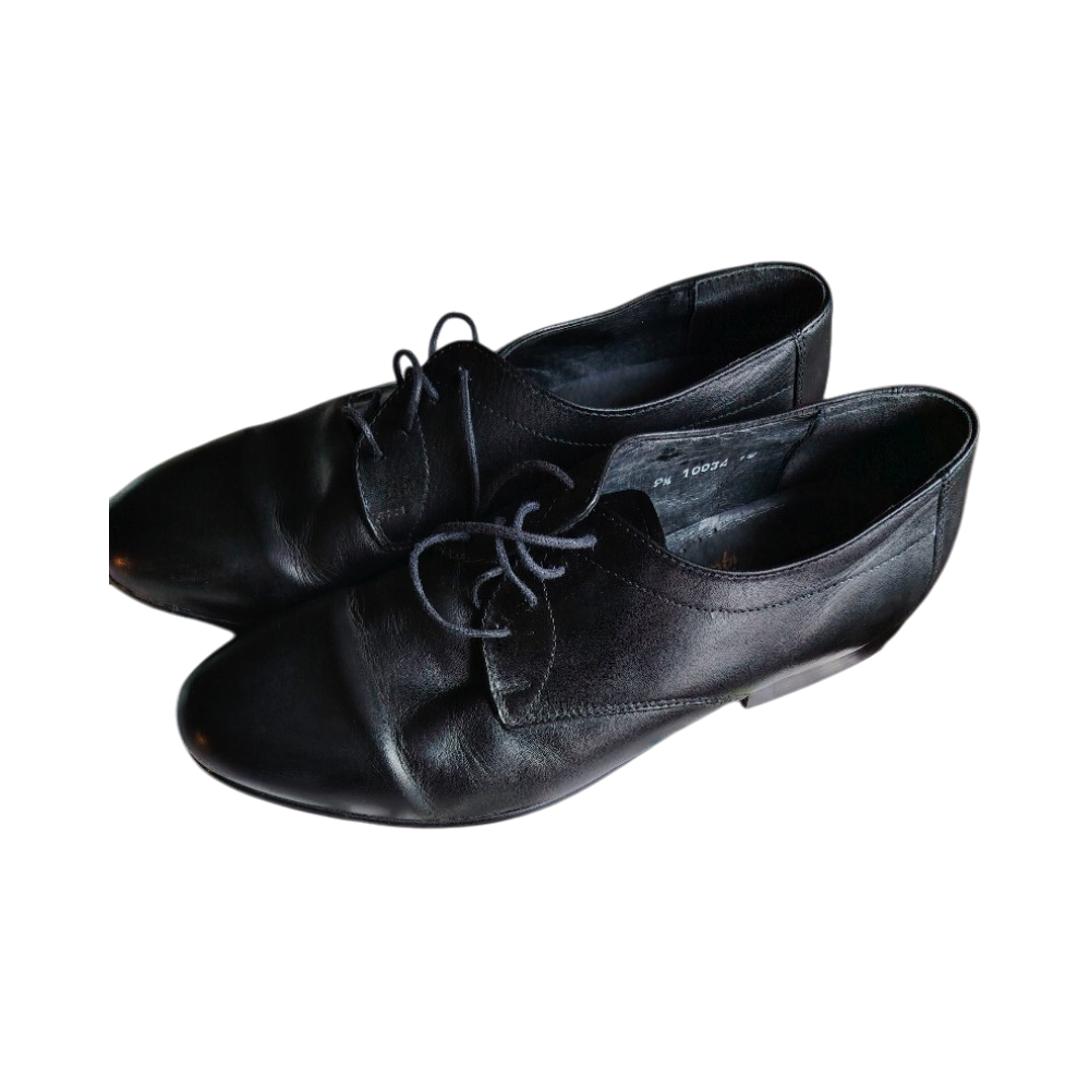 Mustat nahkaiset nauhakengät, siistit käytön jäljiltä.