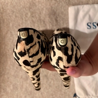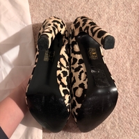 Leopard print platform pumps with high block heel, good condition. Comes with a dust bag & pair of extra heel tips.