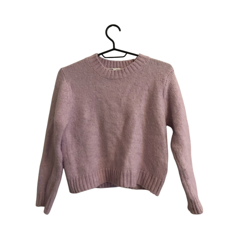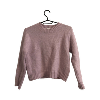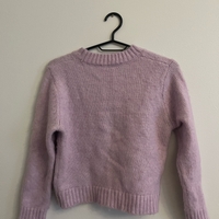 Koristeton, laventelin värinen pyöreäkauluksinen villapaita. Koko vastaa enenmän xs!