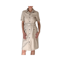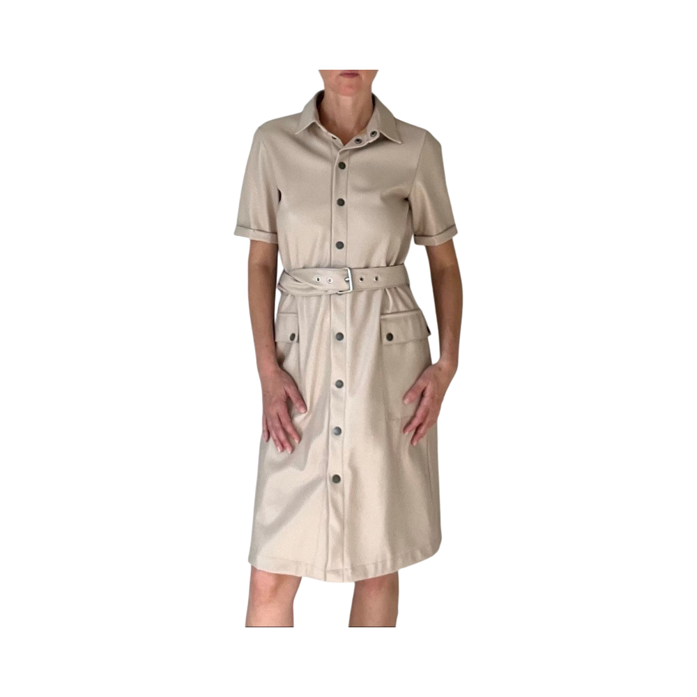 Polvipituinen napitettu mekko vyöllä, siisti beige sävy. Koko XS. Kuin uusi. Malli on 162 cm pitkä. Nouto Helsingistä mahdollinen.