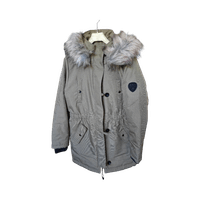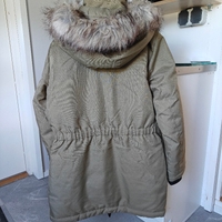 Yhden talven käytössä ollut tosi lämmin parkamallinen takki. Hihassa ja taskun kohdalla jotain läikkää en ole koittanut pestä.