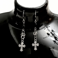 Tyylikkäät hopeiset ristiriipuskorvakorut ruostumatonta terästä