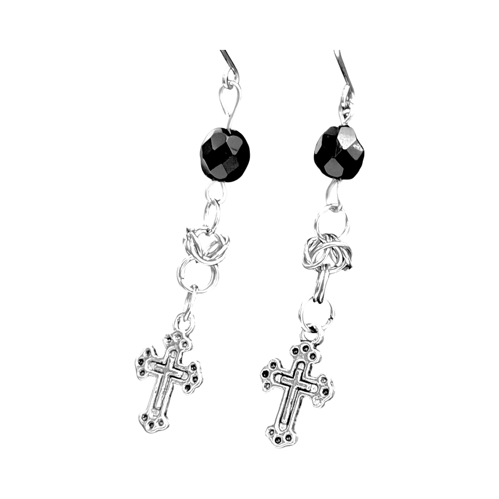Pitkät ristiearrukset mustalla helmillä