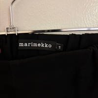 Marimekon mustat suorat housut. Joustava vyötärö. Ollut vähällä käytöllä. Ostettu 3 vuotta sitten, mutta kunto hyvä. Koiratalous.