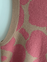 Naisten neuleliivi kukkakuviolla, beige ja pinkki. Joustava