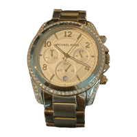 Vain noin 10 kertaa ranteessa ollut Michael Kors - rannekello. Hyvässä kunnossa siis. Muutamia hiusnaarmuja rannekkseessa, katso kuvat. Vaatii uuden patterin. Mukana alkuperäinen laatikko ja pienennyksestä jääneet palat.