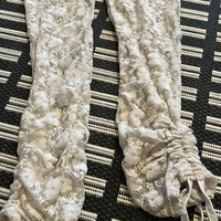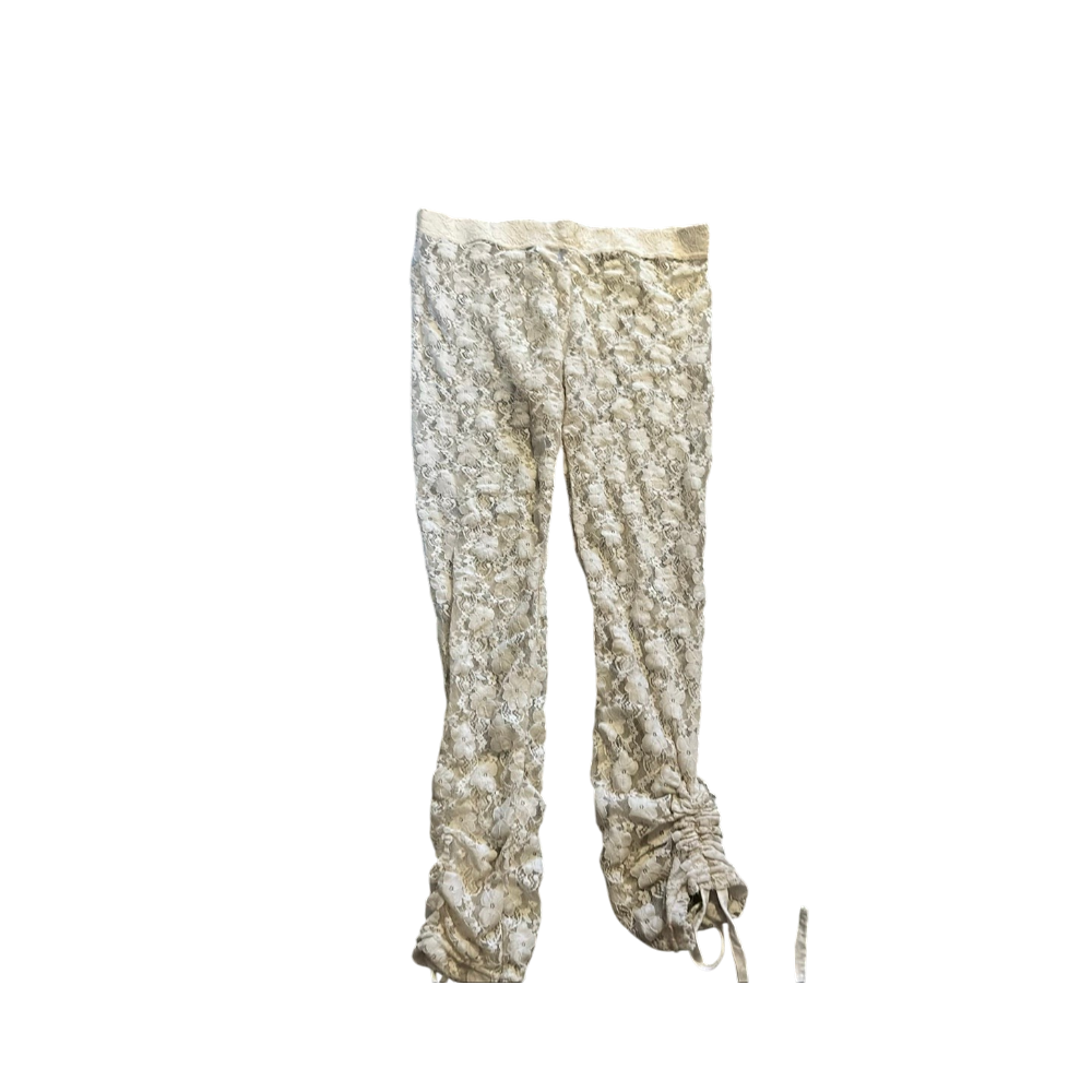 Kevyet, kukkakuviolliset pitsihousut, nyöritys lahkeissa.