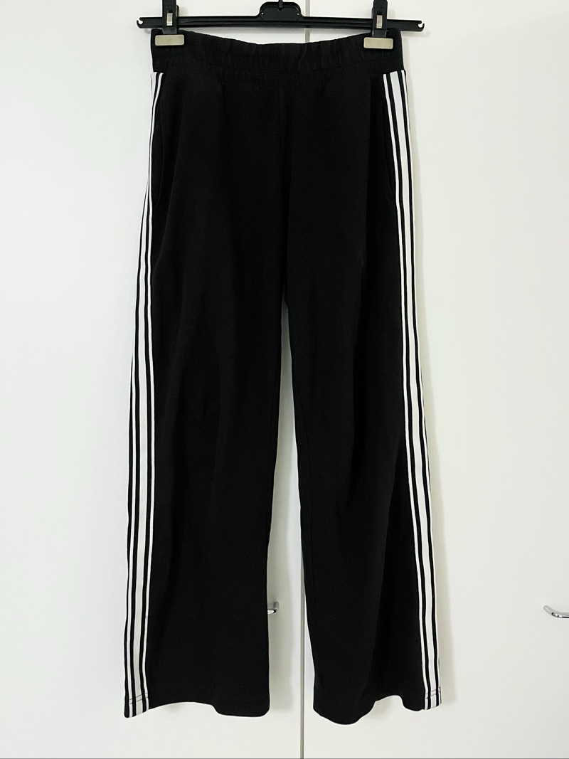 Jokunen kertaa päällä olleet mustat verkkarihousut. Sivussa valkoiset raidat ja taskut. Menee XS/S kokoiselle. Myynnissä myös samanlaiset valkoiset