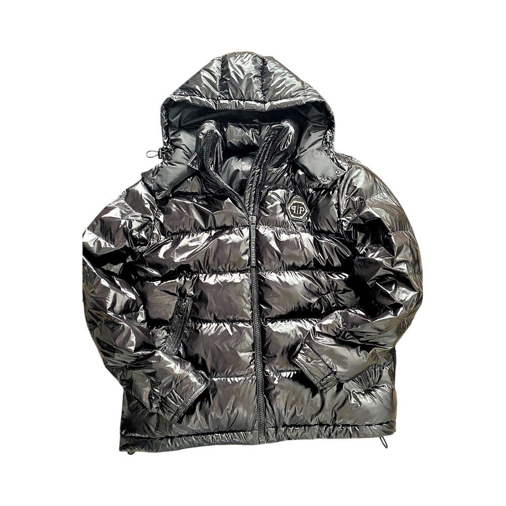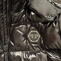 Hyväkuntoinen philipp plein musta untuvatakki, tyylikäs.