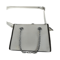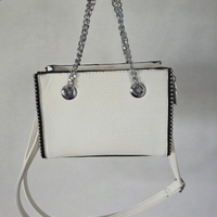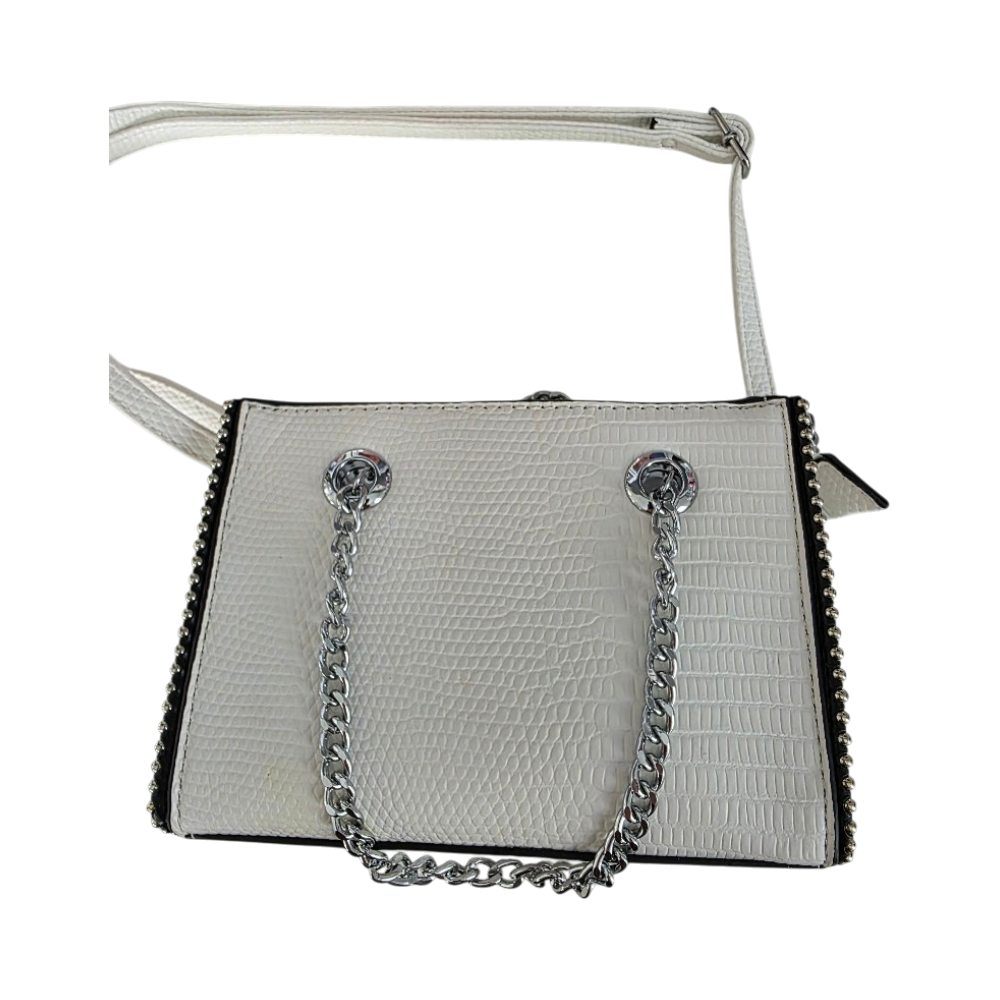 Valkea keinonahkainen pikkulaukku hopeaketjulla. Käytetty muutaman kerran juhlissa.