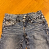 siistit ja hyväkuntoiset lasten farkut. Klassinen malli, jossa vyölenkit ja säädettävä vyötärö sisälenksuilla. Ei tahroja tai kulumia – erittäin hyvässä kunnossa.