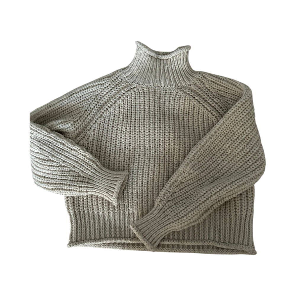 Ihana luonnonvalkoinen/kermanvärinen villapaita korkealla kauluksella, koko M.