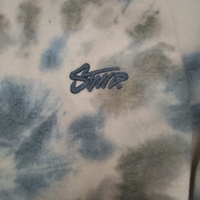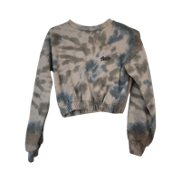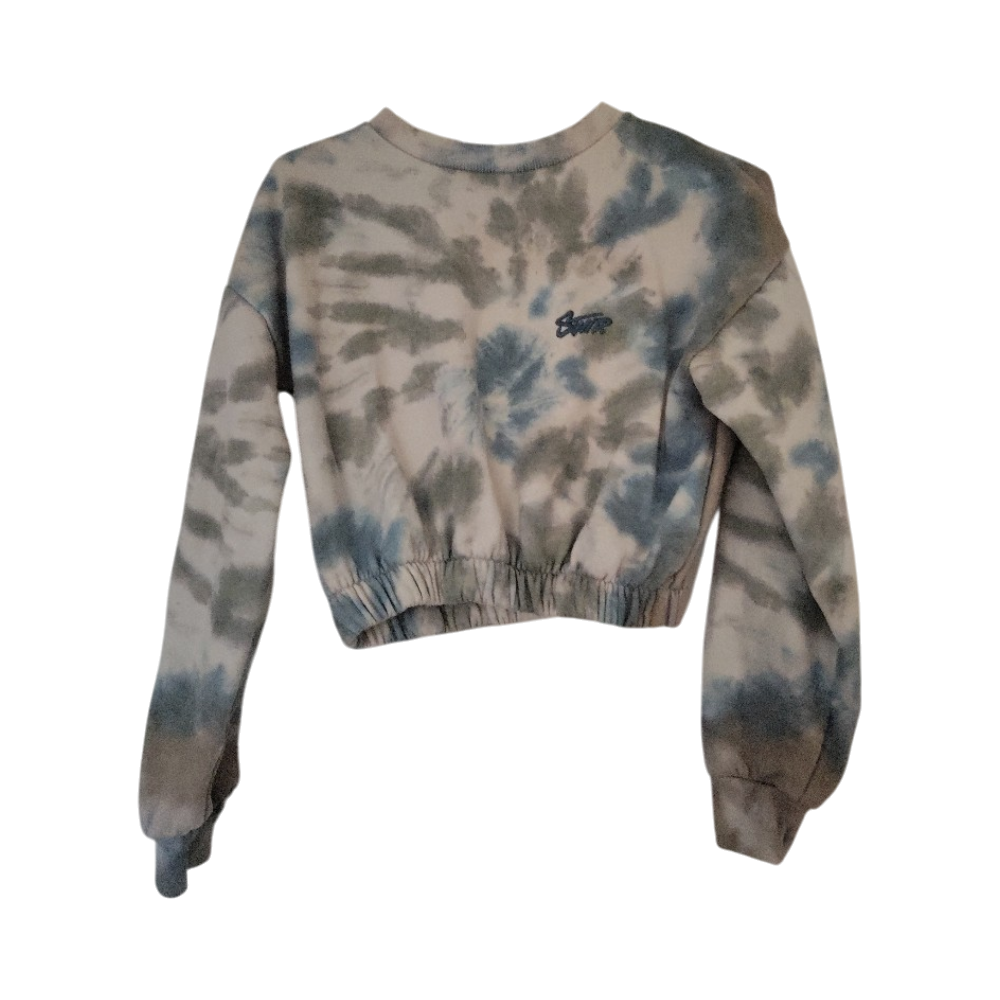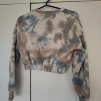 Värikäs tie-dye college, joustava vyötärö ja kirjailu edessä.