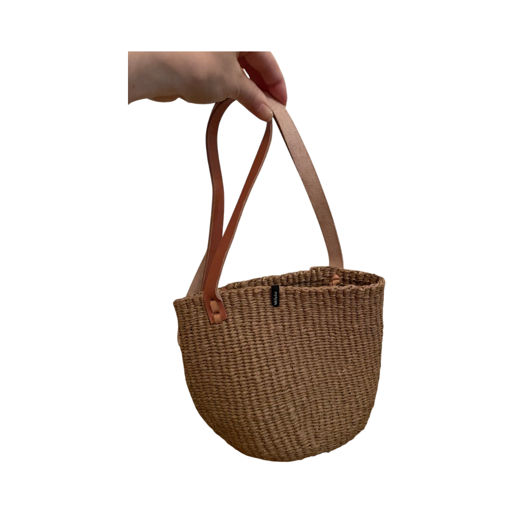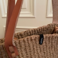 Punottu pikkulaukku nahkaisella hihnalla. Söpö pieni kesälaukku. Pari kertaa käytetty. Koko XS.