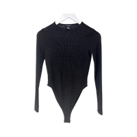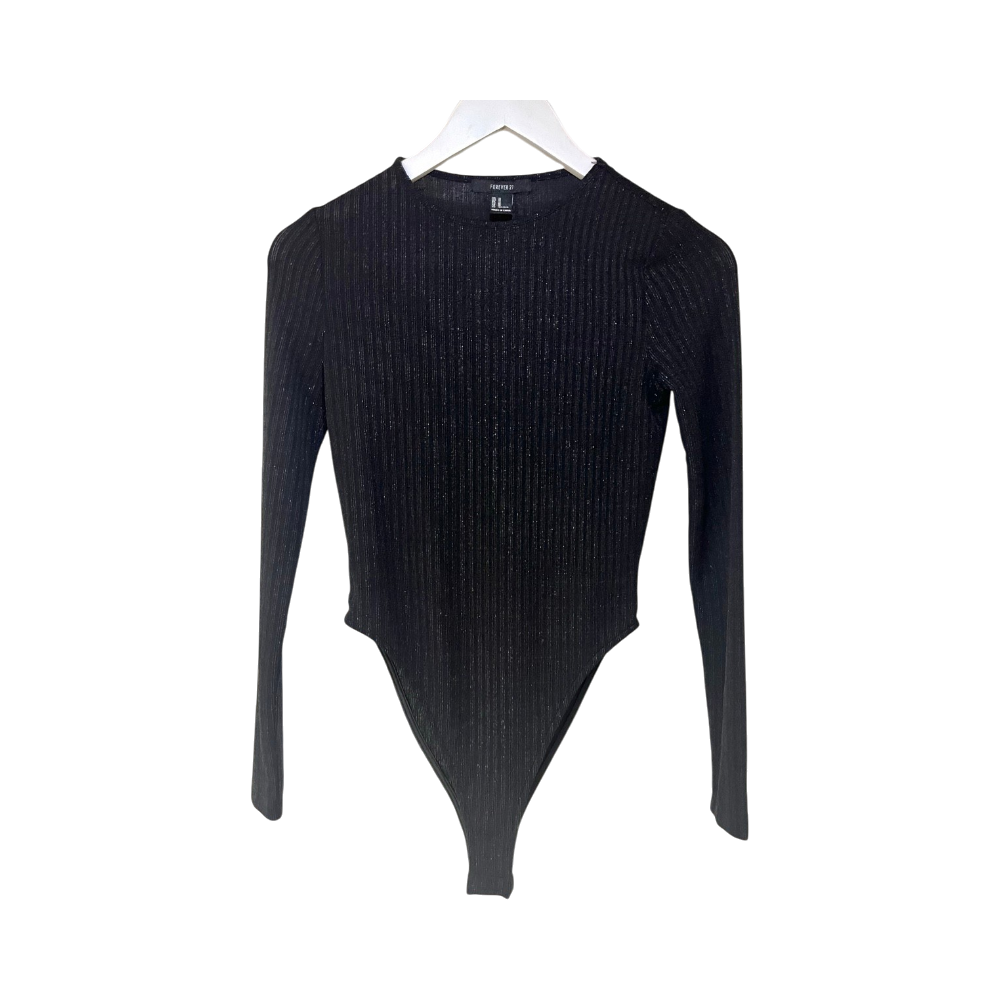 Pitkähihainen ribbattu body, hopeaglitterkimalle. Haarakiilassa nepparit.