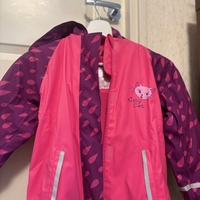 Söpö ja käytännöllinen sadetakki, sopii noin 6–8-vuotiaalle.