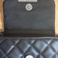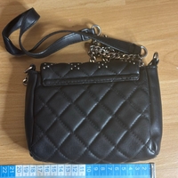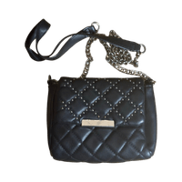Pieni quiltattu musta laukku hopeisilla niiteillä. Pientä kulumaa. Näkyy kuvissa.