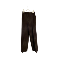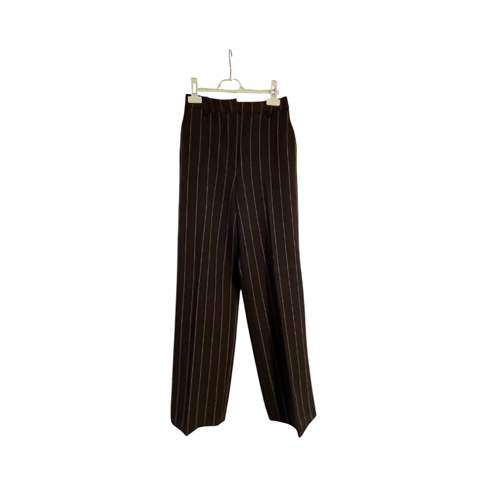 Suorat lahkeiset, korkeavyötäröiset raidalliset housut.