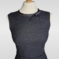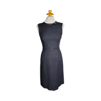 Crafted from a luxurious blend of virgin wool, silk, and cotton, this dress features a refined tweed-like texture and a delicate silk ribbon bow at the neckline.