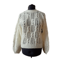 Pörröinen pitsineulepaita. Leveät hihat. Kainalo-kainalo 60 cm.