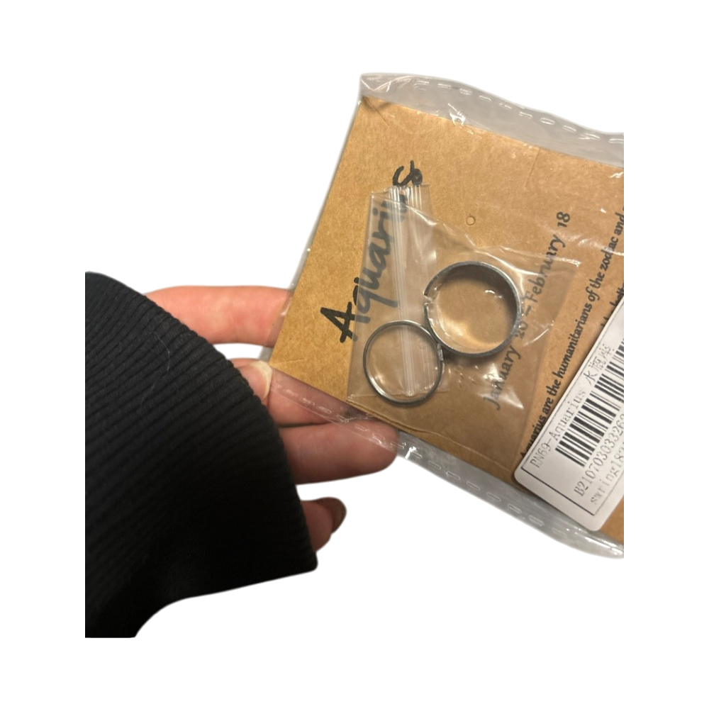 Kaksi yksinkertaista hopeanväristä metallisormusta, uusi pakattu. Vesimies sormuskset