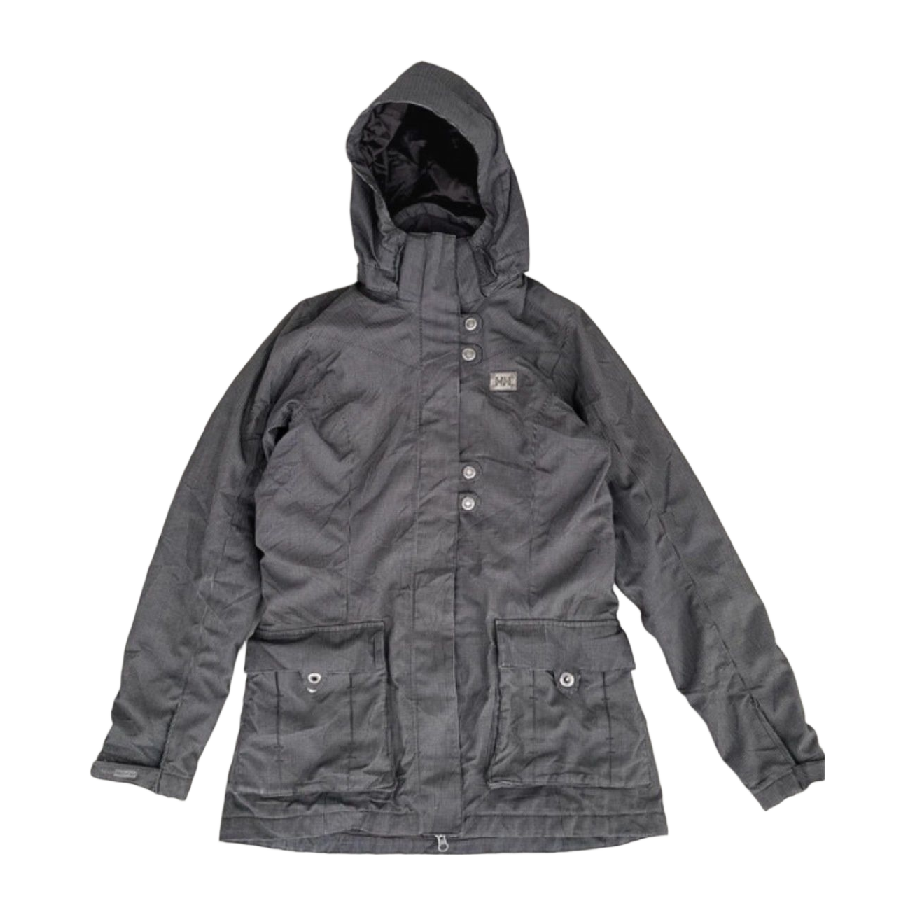 The jacket is in good condition, zippers and buttons work. Part of the zipper is missing, shown in the picture.