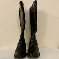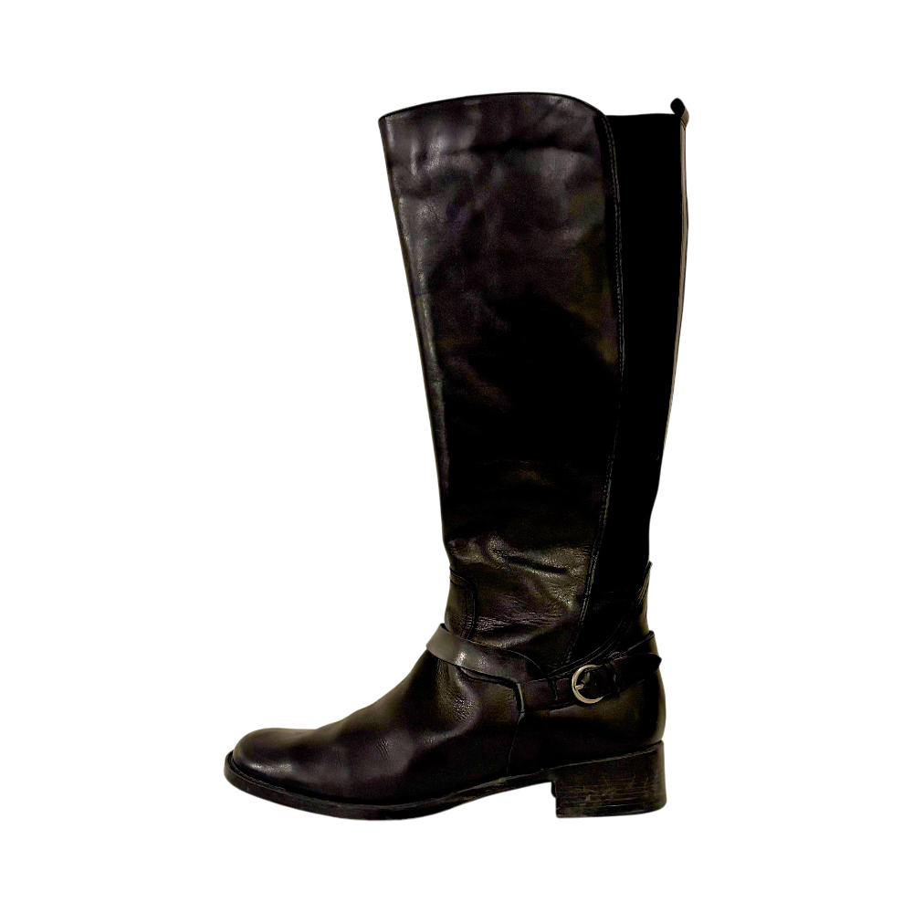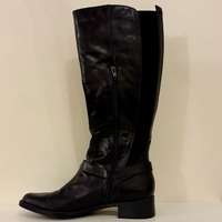 Tyylikkäät, pitkät mustat saappaat. Aitoa nahkaa. Varressa joustot takana.