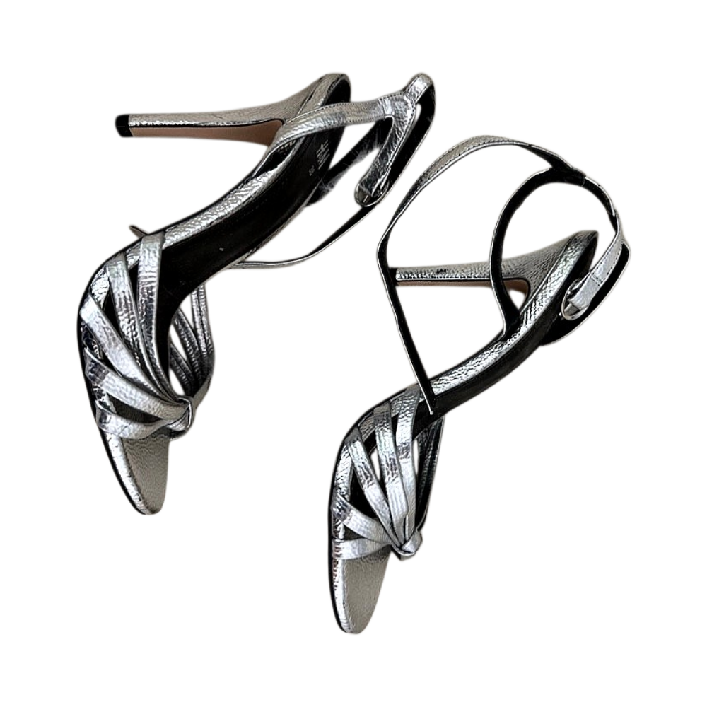 Hopeiset avokkaat nilkkaremmeillä, korkeat korot. koko 38