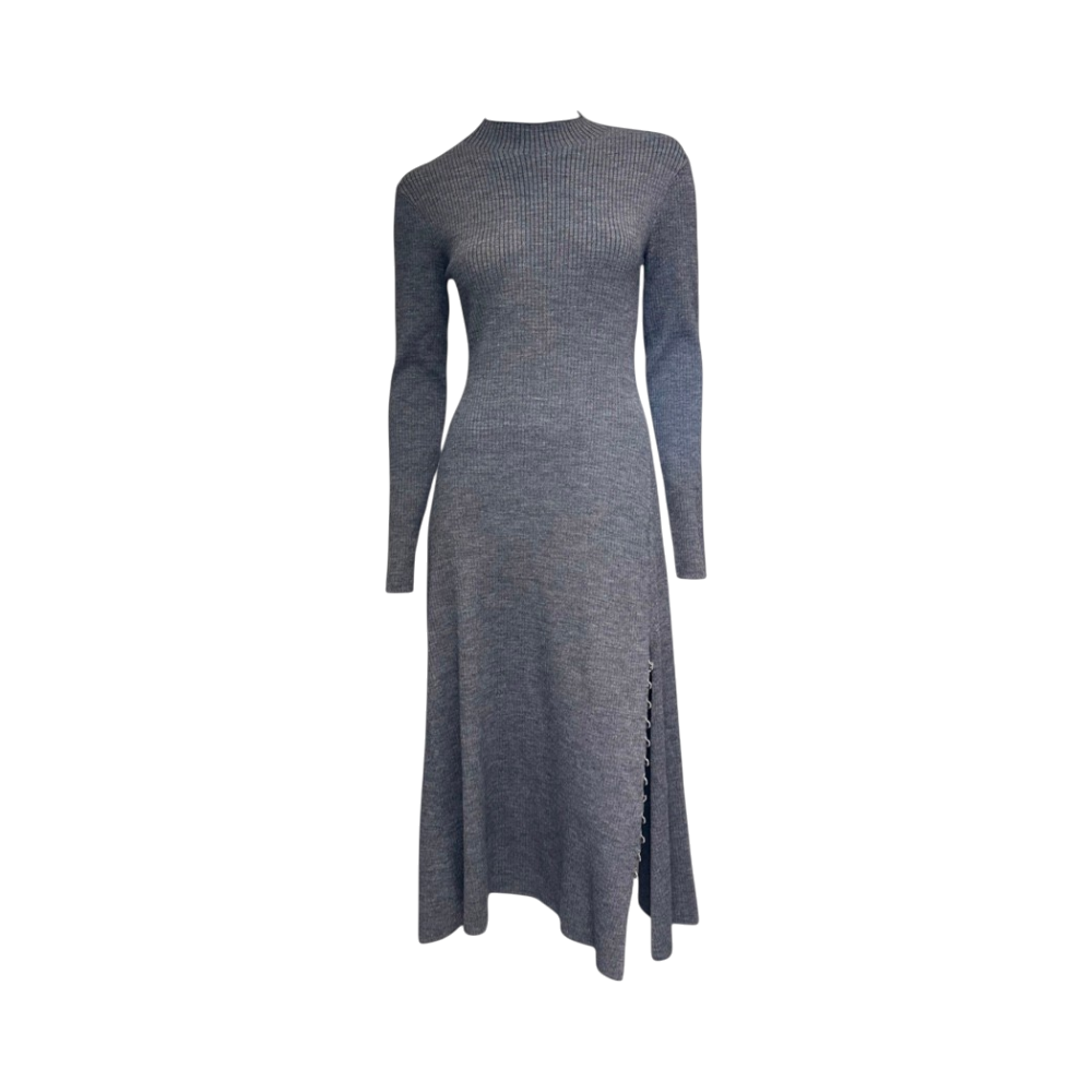 Harmaa Maje neule mekko halkiolla ja metallisella yksityiskohdalla.