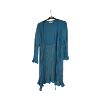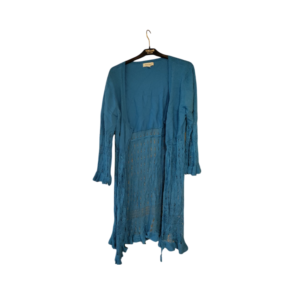 Pitkä, avoin neulejakku pitsiyksityiskohdilla.