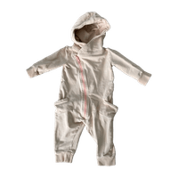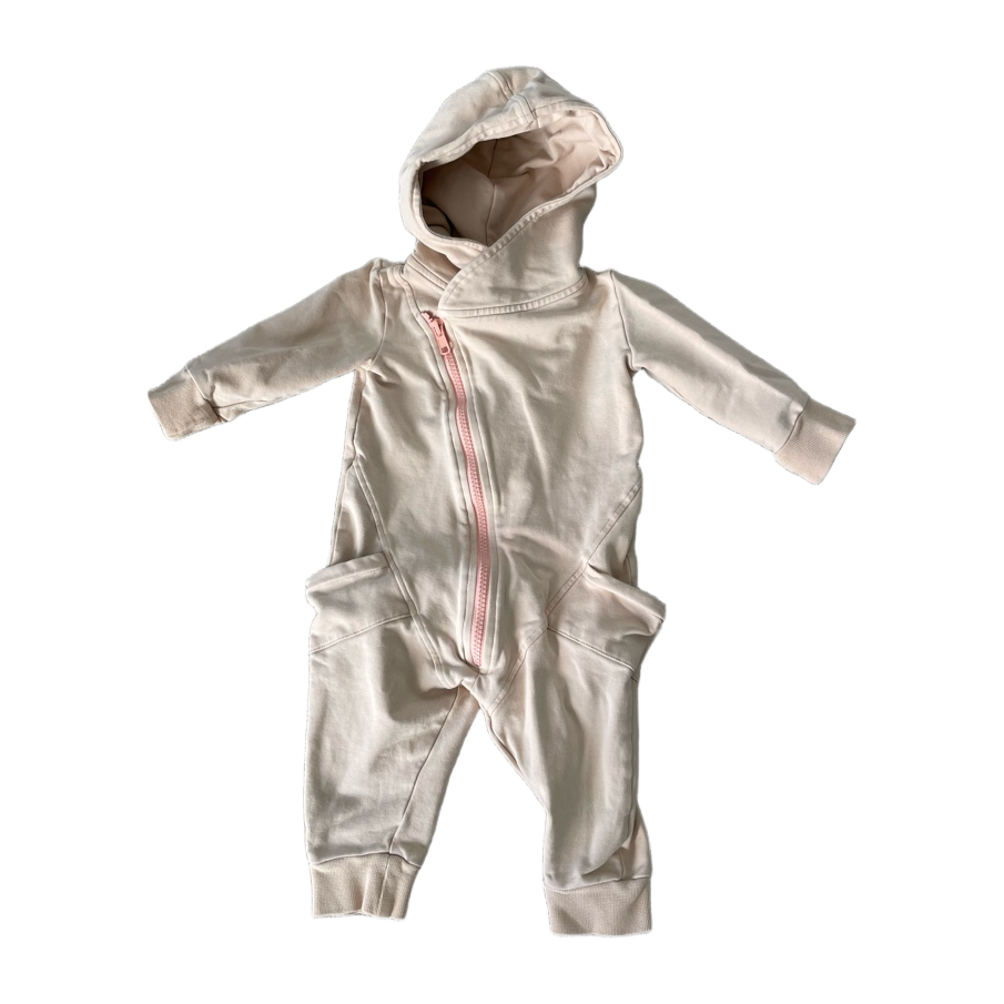 Gugguun vaaleanbeige jumpsuit tummemman persikan värisellä vetskarilla. Koko 74, mutta ottaisin käyttöön jo 68 koossa. Siistikuntoinen, mun mielestä vielä silleen suht pehmeä! Ainoona moitteena vaan että koitettu muutama banskutahra poistaa taskun kohdalta ja tahranpoistoaine jätti sit muutamia pisteläikkä jälkiä tuohon, banskutahrat kyllä lähti! Mutta vanish tahrat sulautuu aika hyvin tuohon lämpimään beigen väriin, ja piti itelläki syynätä että missä olikaan se kohta. Eli ei erotu silmiinpistävästi. Vetskarin vetäjästä ministi maalia kulunut