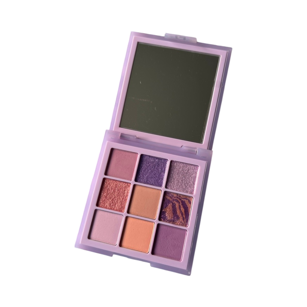 Hudan 9-sävyinen liila-pastelli luomiväripaletti, sisältää matta ja shimmer sävyjä. Hyväkuntoinen.