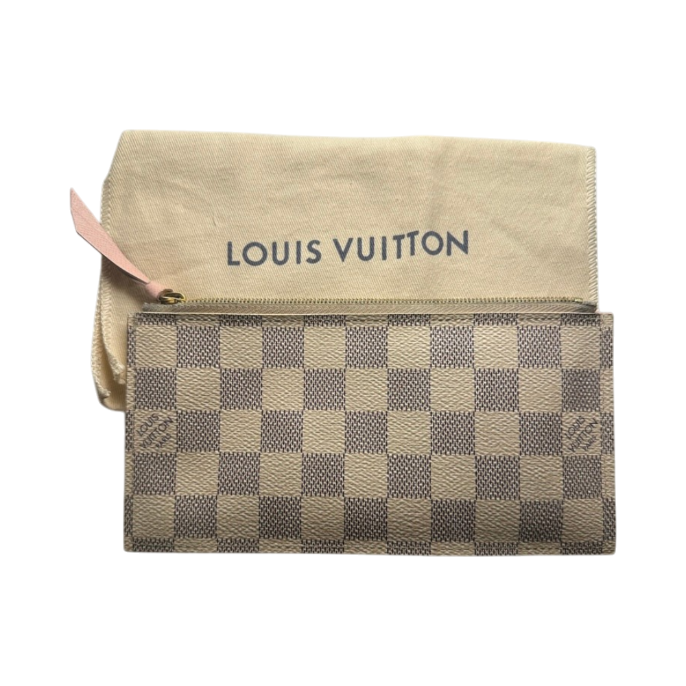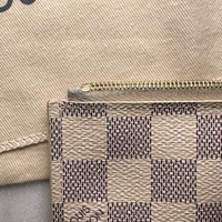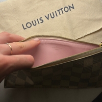 Louis Vuitton canvas pouch with zip closure, light pink pull tab. Lightly worn edges.