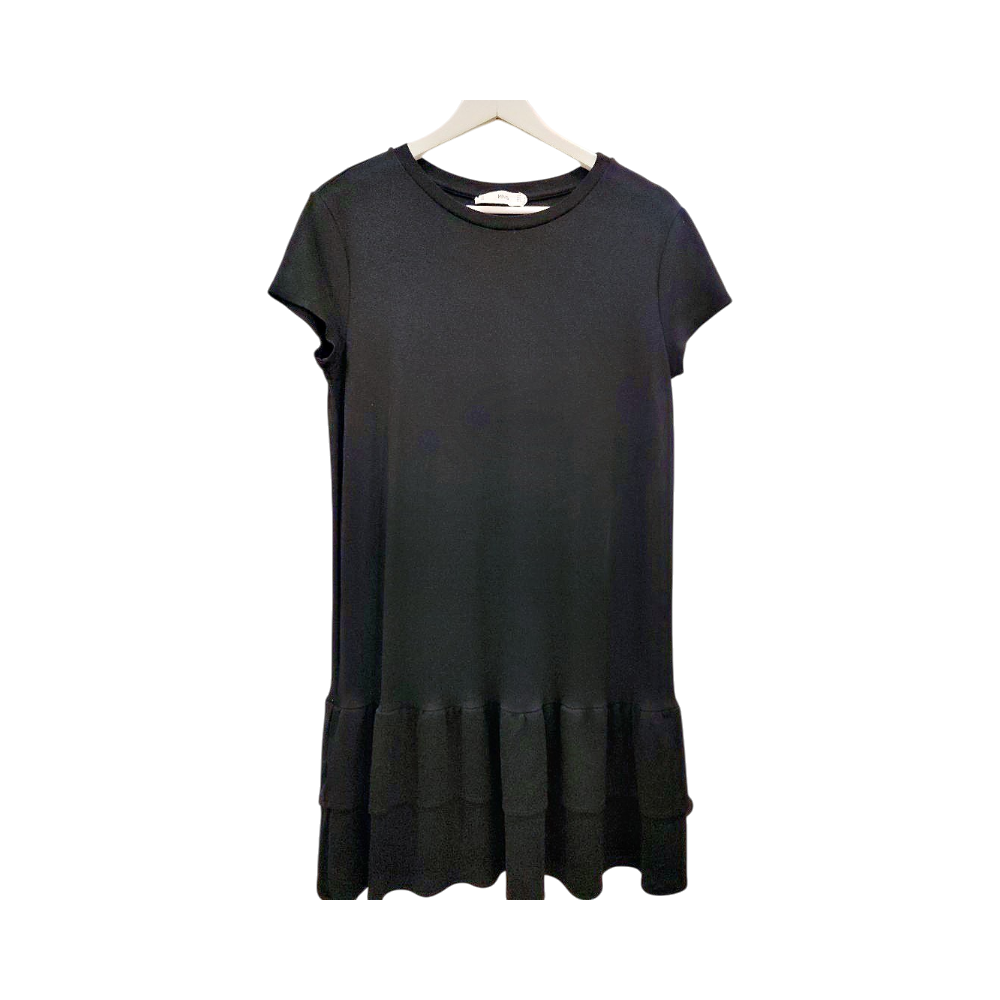Yksinkertainen musta lyhyt mekko, röyhelöhelma. Koko L, mutta vastaa mielestäni S.