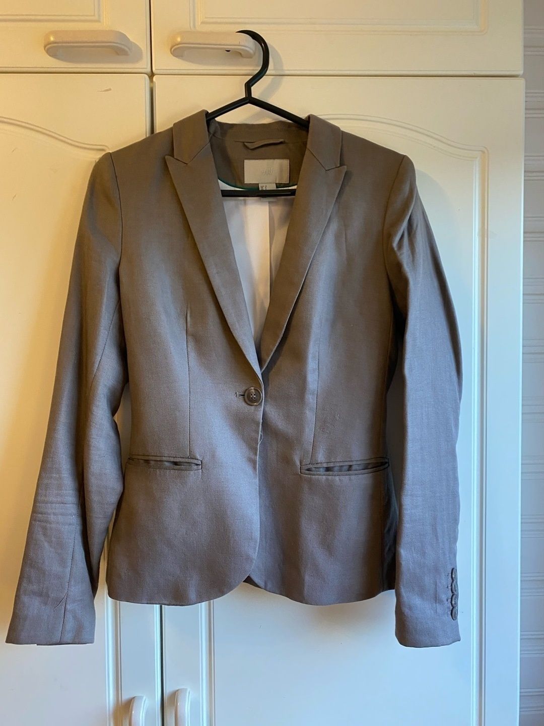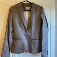 Lyhyt beigen värinen bleiseri. Siistissä kunnossa, valkoisessa sisuskaankaassakaan ei ole tahroja tms. Selän keskeltä ompeleet hieman näkyvät jos takki venyy.