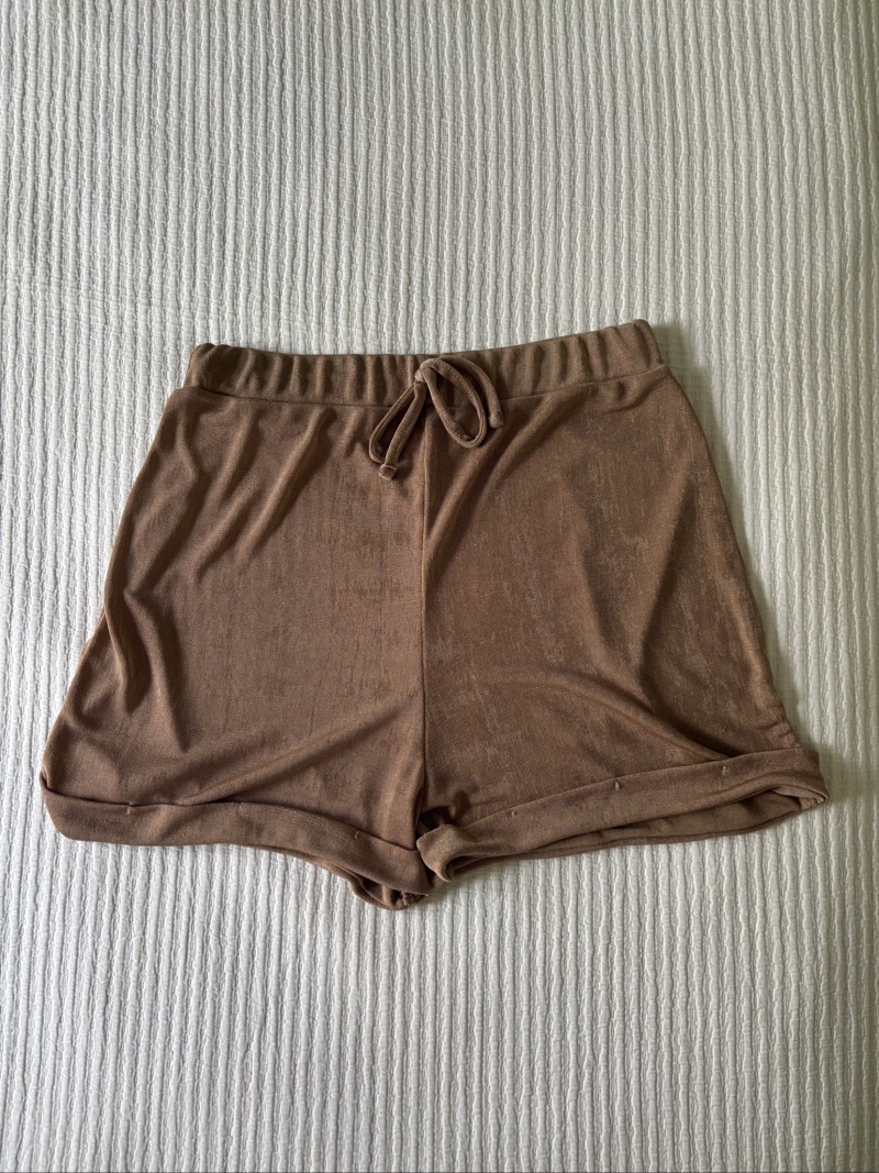 Vanhan roosan sävyiset Boohoon shortsit koossa 40. Itse olen kokoa 38 ja nämä ovat minulle sopivat.