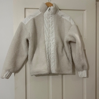 Warm white sherpa jacket with zip and contrast panels from Peak Performance. Size M. Used only a few times.