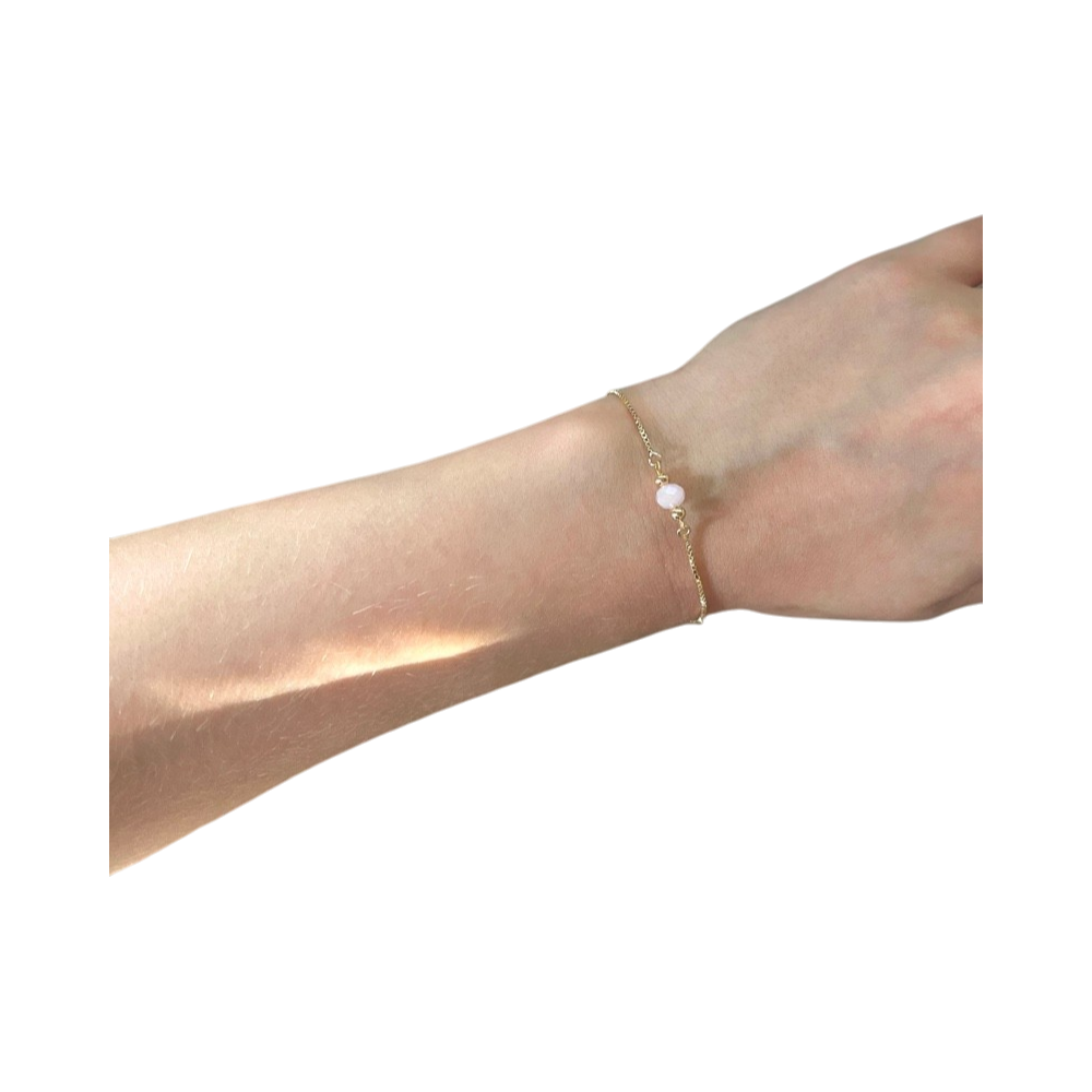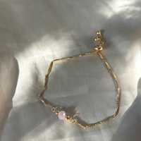 Käsintehty rannekoru lasihelmillä. Saatavilla sekä hopeisena että kultaisena. Säädettävä pituus. Yhteensopivia korvakoruja myös saatavilla.