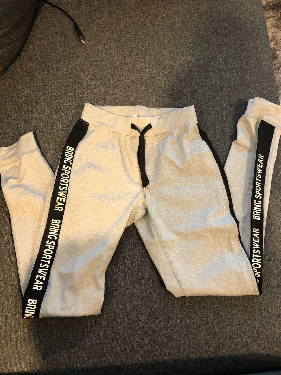 Treenihousut, muuten hyvässä kunnossa, mutta toisessa pohkeessa on tahra joka ei ole lähtenyt pesussa🤷🏼♀️