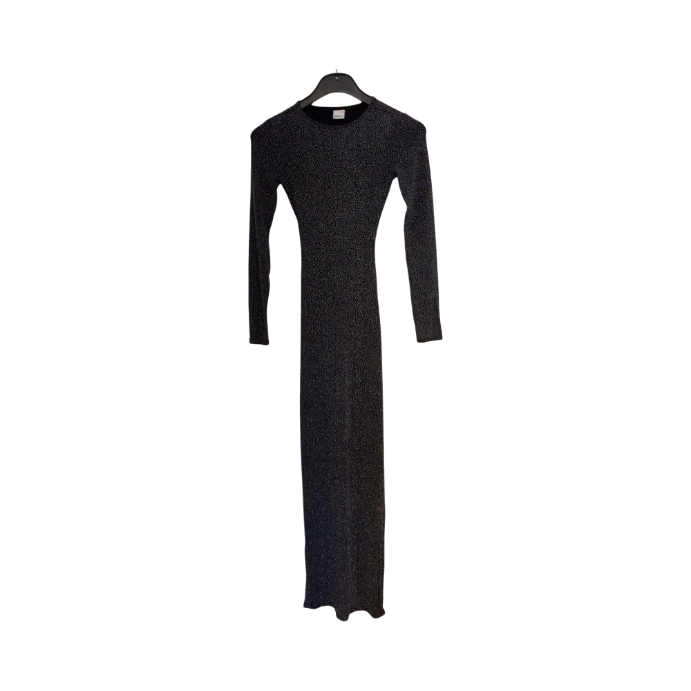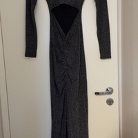 Pitkä, vartalonmyötäinen mekko avonaisella selällä. Joustavaa materiaali sopii xs/s