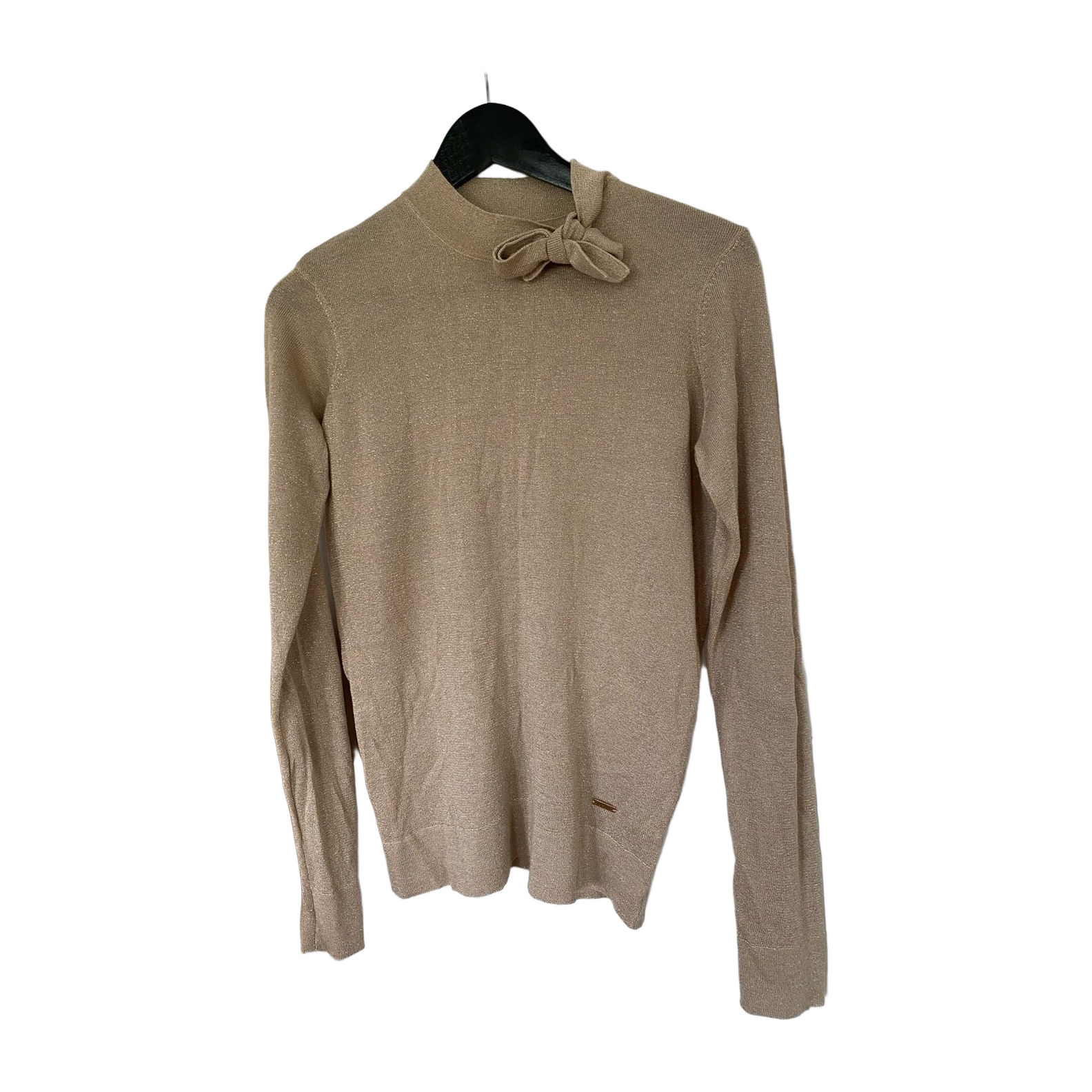 Kultahohtoinen pitkähihainen. Ohutta neulosta ☺️ Materiaalilappu leikattu.