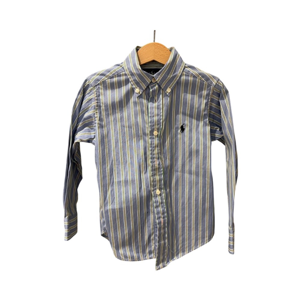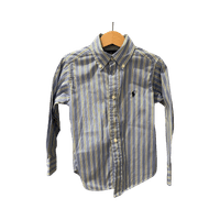 Siniraidallinen puuvilla kauluspaita, koko 4, eli 4 v. Paristi ollut päällä. Ostettu Floridasta.