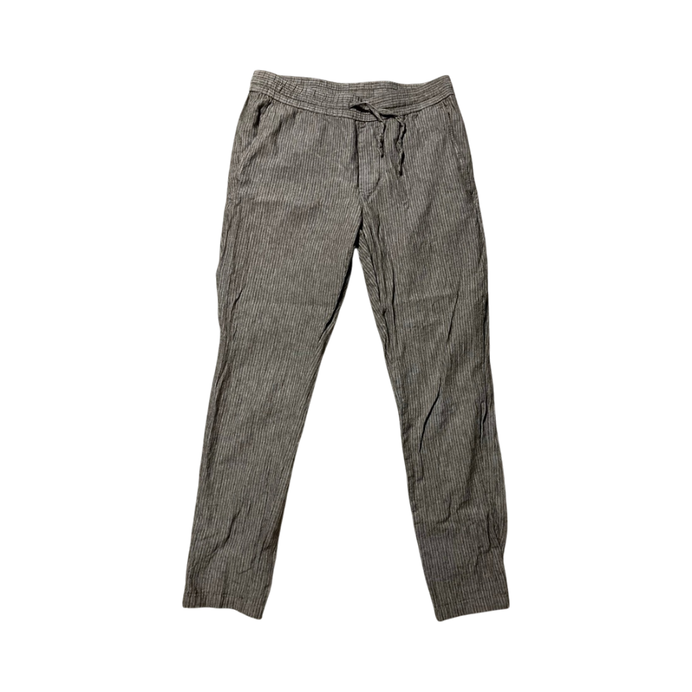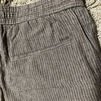 Hengittävät, rennot raidalliset miesten housut, vyötärönauha solmulla.