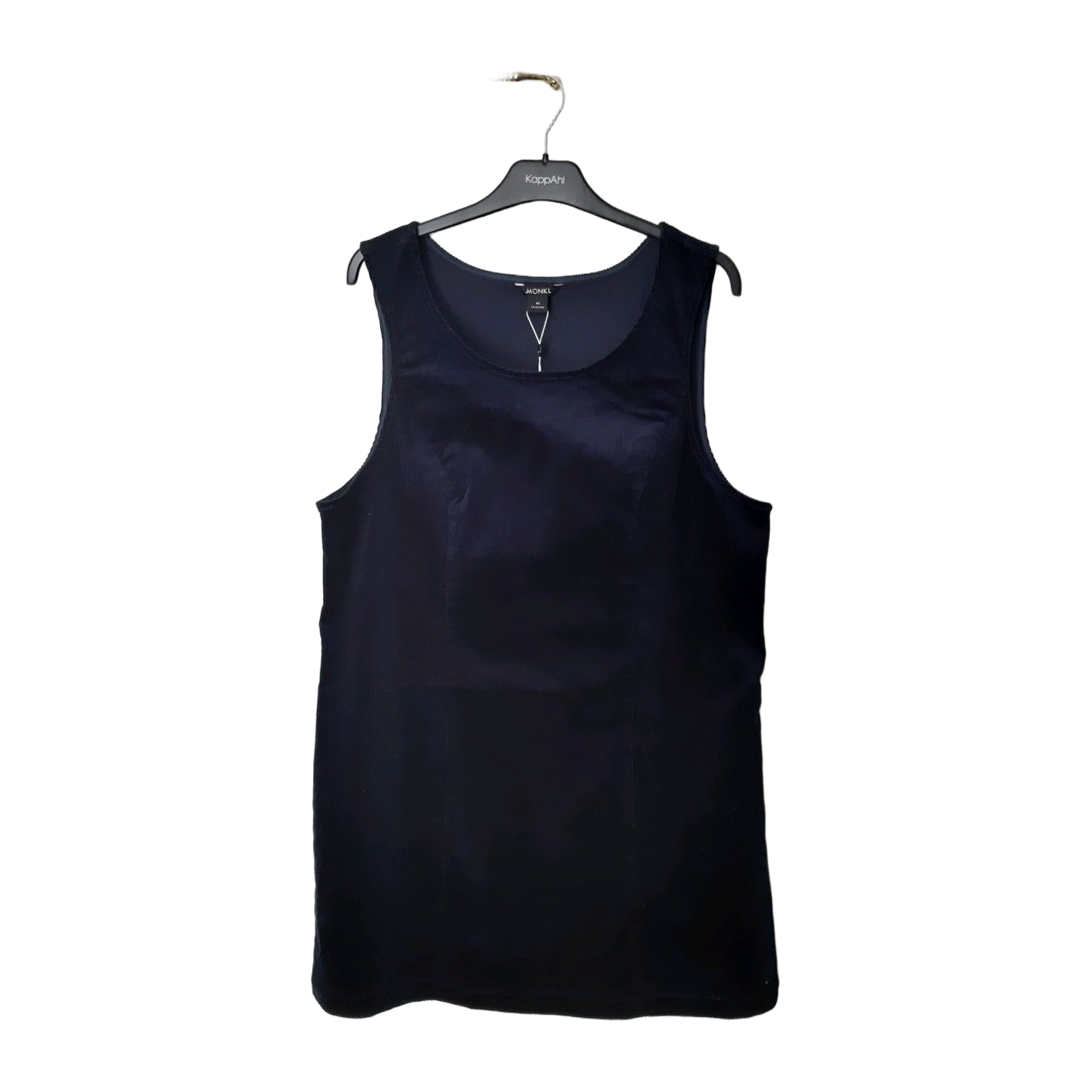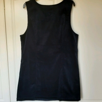Syvän tummansininen mini liivihame mekko vakosamettia. Sivussa piilovetoketju. Olkapäästä helmaan 89cm. Kuvissa eri valoissa. Koko eu 46