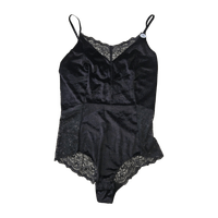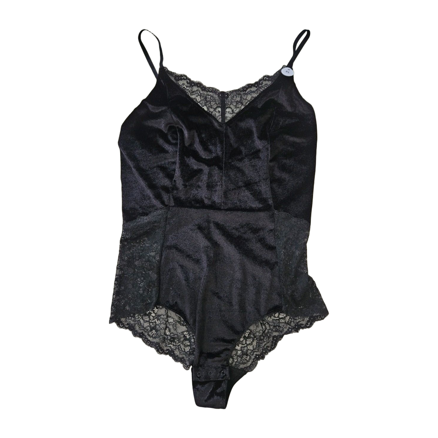 Celina velvet body, musta sametti pitsillä, nepparit, koko XL, uusi lapuilla, haaraosan vuori 100% puuvillaa