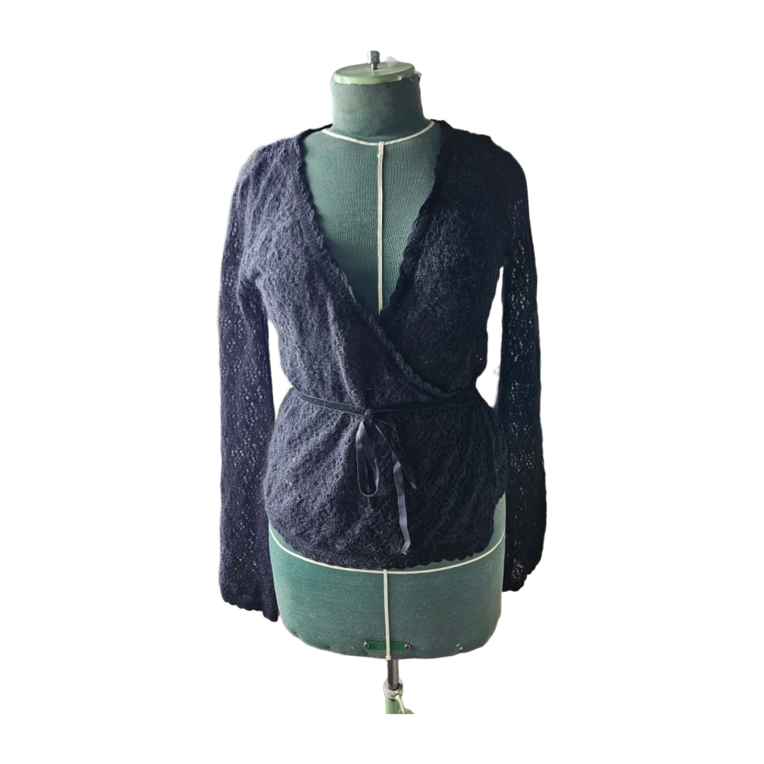 Pitsi kietaisu neule musta, samettiset narut, hihat levenevät hieman, koko eu 44, kuvassa eu 42 kokosen mallinuken päällä, neule on tehty villasekoituksesta, ostettu joskus zalando pre-owned